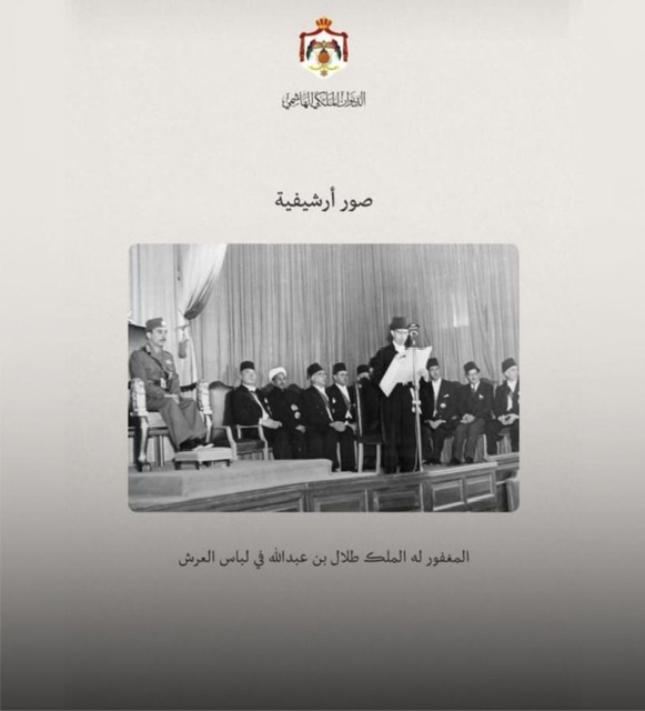 ودعم الديوان هذه المعلومات بصور أرشيفية نادرة للملوك الهاشميين بلباس العرش، من بينهم جلالة المغفور له الملك المؤسس عبدالله الأول بن الحسين، وجلالة المغفور له الملك طلال بن عبدالله، ما يؤكد على استمرارية هذا الإرث الدستوري عبر تاريخ الدولة الأردنية.