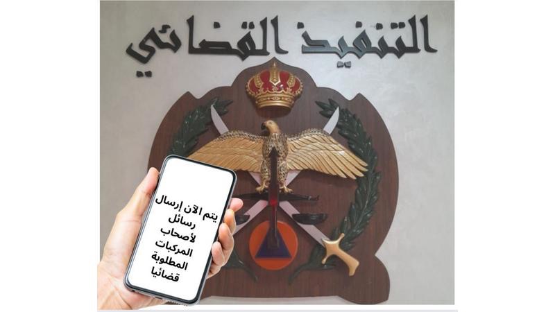 أعلنت إدارة التنفيذ القضائي في مديرية الأمن العام أن وصول رسالة (SMS) إلى صاحب المركبة يشير إلى وجود طلب قضائي يستوجب المراجعة الفورية.