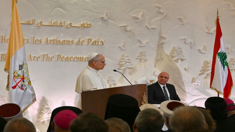 وفي أول خطاب ألقاه في القصر الرئاسي، بحضور المسؤولين اللبنانيين ودبلوماسيين وممثلين عن المجتمع المدني، شدد البابا على أهمية "السلام" الداخلي بين اللبنانيين، وهي كلمة كررها 27 مرة في خطابه، من دون التطرق إلى الأوضاع الإقليمية والدولية أو الحرب الأخيرة بين حزب الله وإسرائيل.