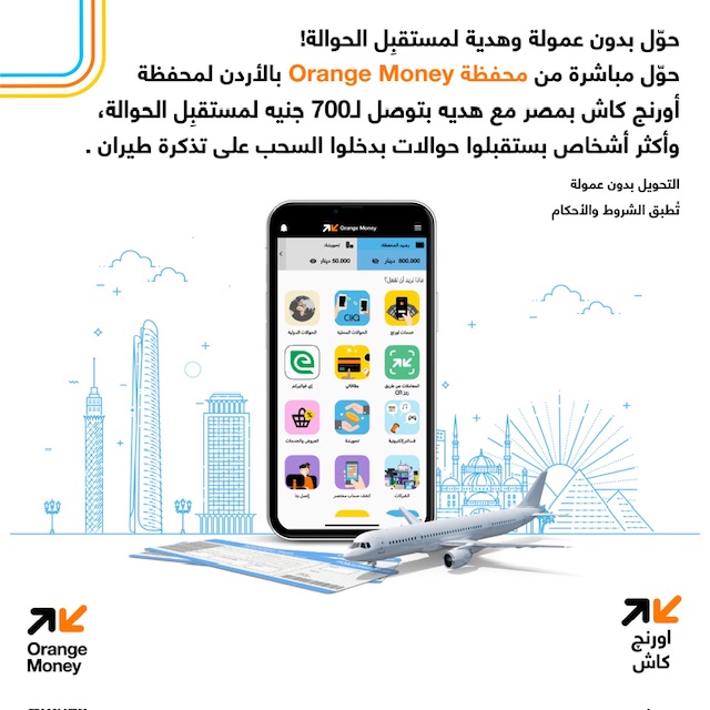 محفظة Orange Money الأردن تطلق عروضاً مميزة للحوالات الدولية إلى مصر بالتعاون مع أورنج كاش